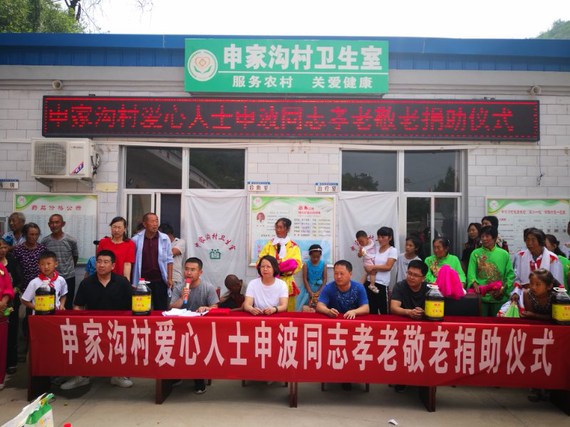 孝老敬老是做人的根本,是中华民族的优秀传统美德,是家庭和睦社会安定的基础。申家沟村是省定贫困村,申波同志是走出家乡的民营企业家,同时也是一名中国共产党员,他深知致富不能忘了家乡人,为了让村民树立尽快脱贫致富的信心和决心,决定尽自己的力量献出爱心,在申家沟村开展孝老敬老爱心捐赠活动,希望通过此次活动让全村形成尊老爱幼的良好风气,让传统孝文化在申家沟村生根发芽。此次孝老敬老爱心捐赠和爱心积分卡的发放活动,得到了所有村民的认可和一致好评。